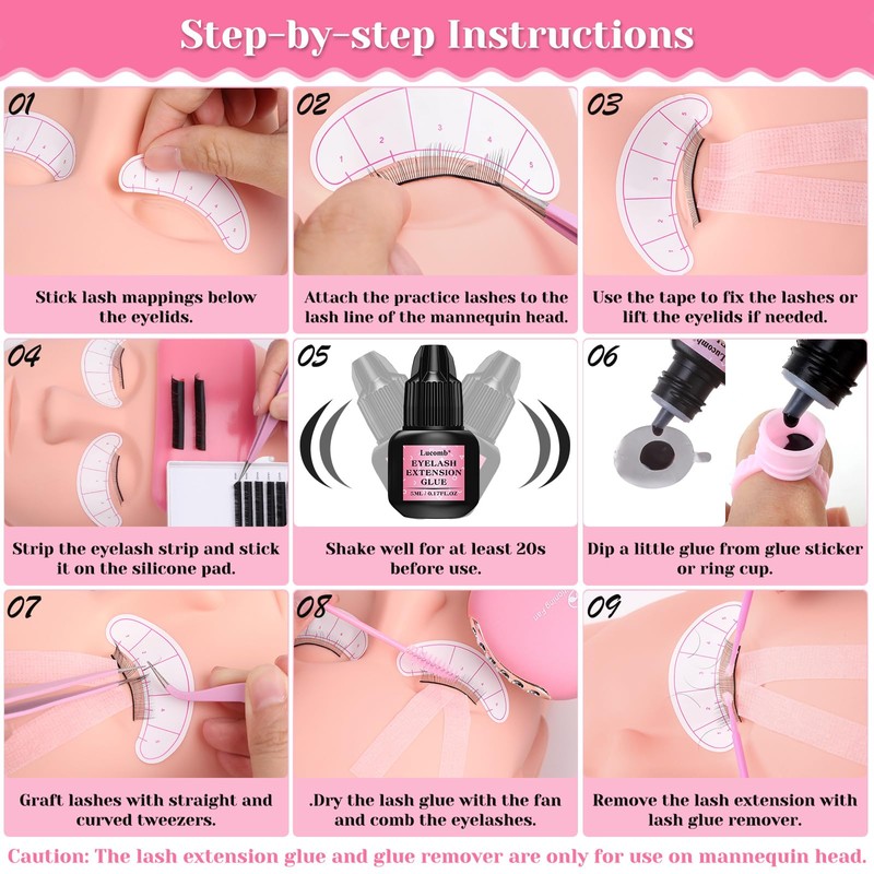 • [Complete Lash Kit for Multifunction Use] This set comes with everything how to do eyelash extensions training and teaching at home for makeup practice. Also, they can use for beauty salons or as a gift for beginner eyelash artist, cosmetology student, massagist to do hairdressing training, human body demonstration, massage training, massage acupoint teaching, anthroposcopy, art. A complete lash practical tool kit can make your work easier faster, and a great way to promote your new project.