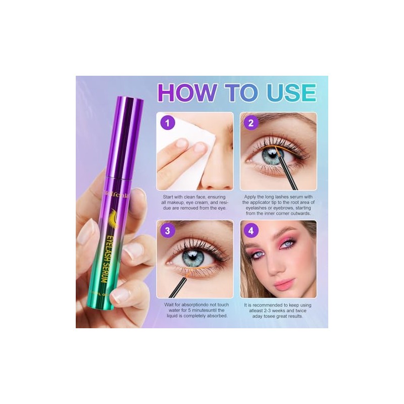 - Easy to Use: Our small molecule essence is more easily absorbed by eyelash follicles and is equipped with a pointed brush head, which is very easy for daily use. Apply to the lash line, gently apply along the base of the upper lashes, avoiding eye contact. Consistent use results usually take several weeks to months to appear, so consistent use is essential.
