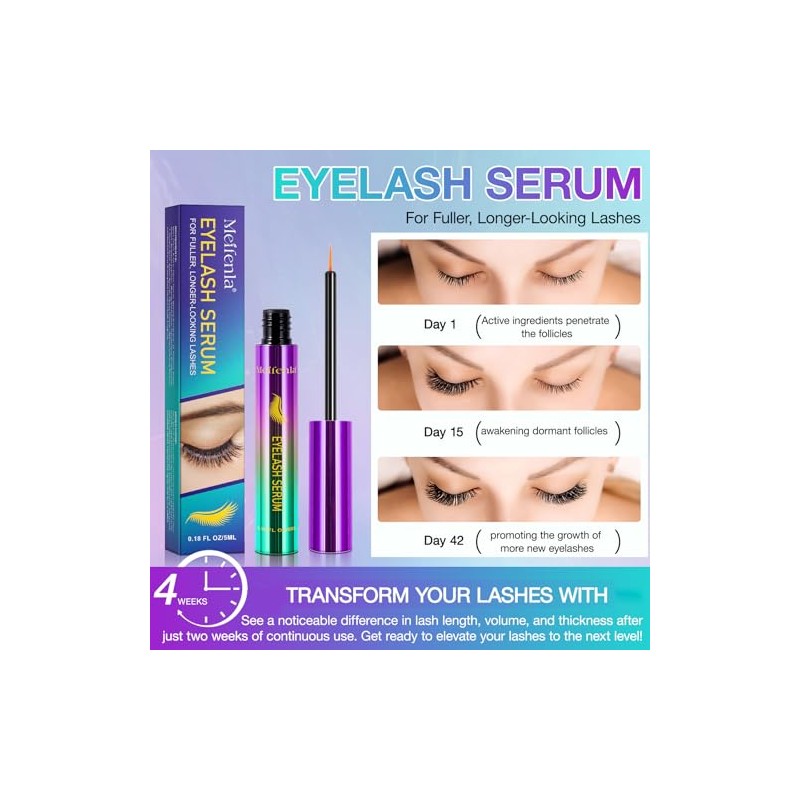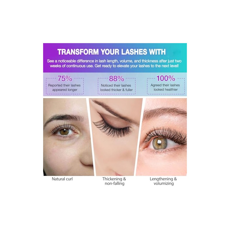 - Long and Thick Eyelashes and Help Eyelash Growth: Create natural and charming eyes, promote eyelash growth, and make your eyelashes thick and long in 4 weeks. Test the real effect. After volunteer testing, our eyelashes grew and thickened by 24% in two weeks and 71% after 6 weeks. Travel-friendly lash serum for eyelash growth.