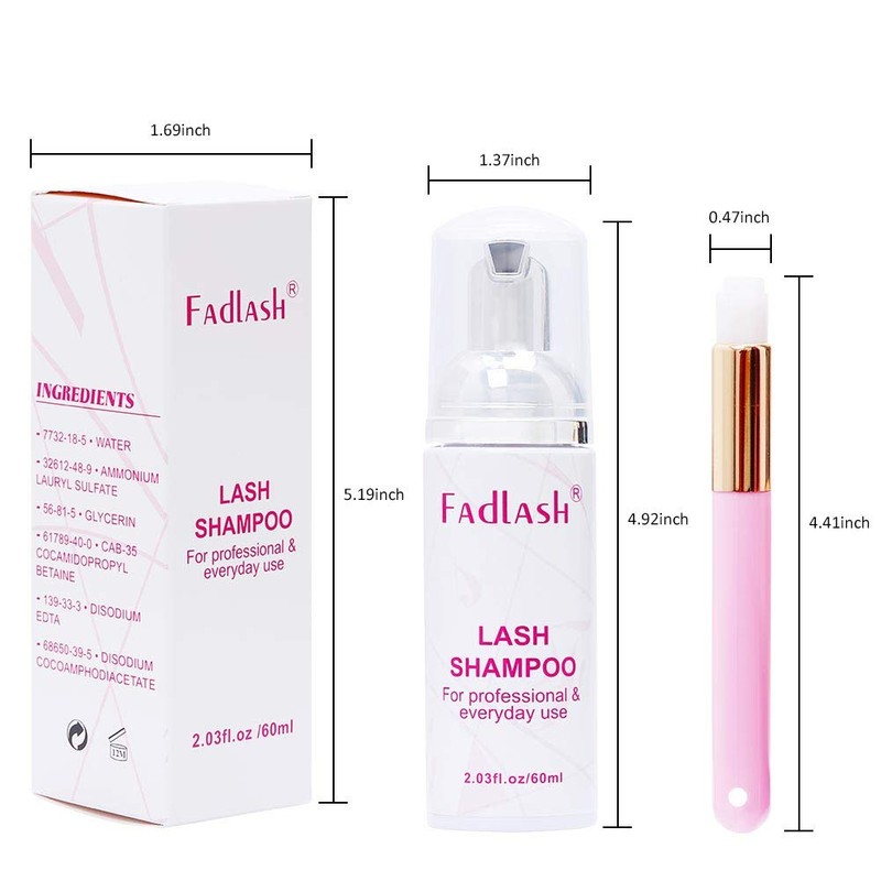 - ✨ FADLASH Eyelash Extension Cleanser: Very gentle, lightweight and oil free formula that effectively remove eye and eyelid make up and does not weaken lash extension bonds. Our premium kit include a lash shampoo, a mascara brush and a cleansing brush.