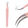 Lash Tweezers For Eyelash Extensions Fiber Tip Lash Tweezers Pink Straight/Curved Lash Extension Tweezers Eyelash Tweezers Professional Tweezers For Lash Extensions(Pink,X03)