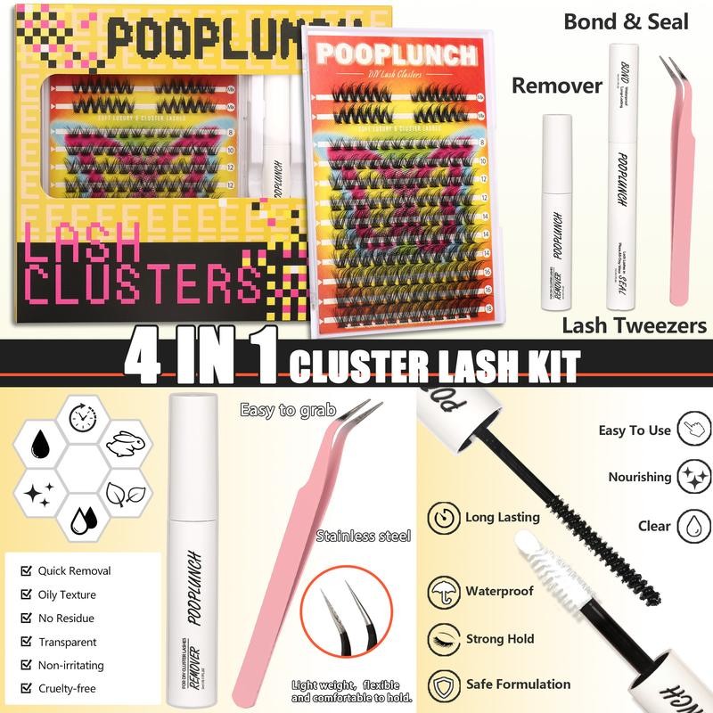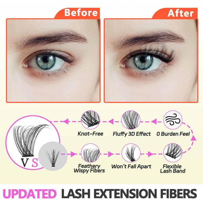 Lashes map for Clusters Kit Fluffy Dramatic Eyelashes Extension Kit DIY, 8-18mm  Individual Lashes Kit with Lash Bond and Seal Makeup:_Ephemeral Kit