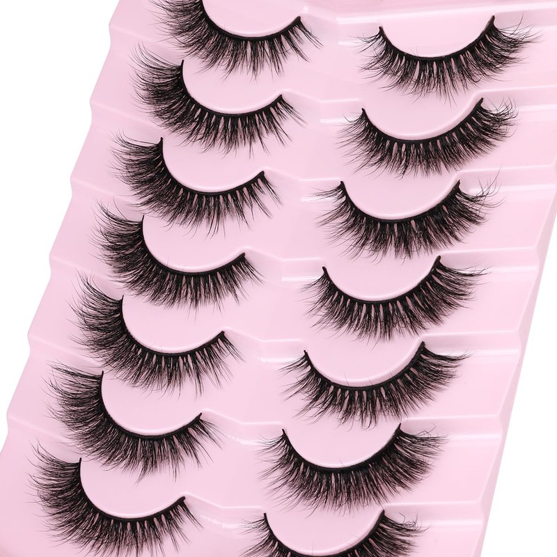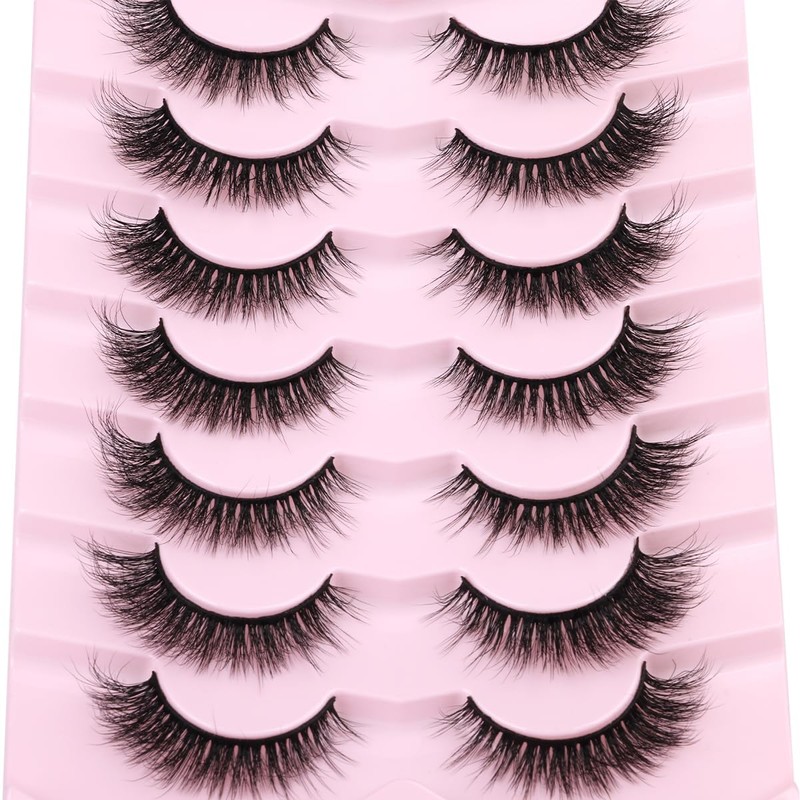 Lashes Natural Look Faux Mink Lashes Fluffy Wispy Eyelashes Short Natural False Lashes Cat Eye 6D Volume Strip Lashes Pack 7 Pairs