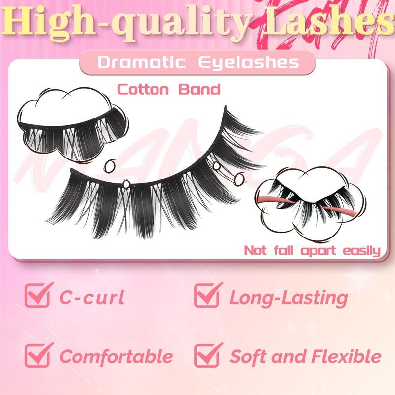 Lashes Spiky Manga Anime False Eyelashes 8 Pairs Faux Thick Soft Strip 8-16mm Wispy Look (doll):_R2