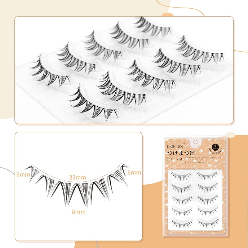 LASHIDOL False Eyelashes, Natural Eyelashes, Round of Eyes, Thin, Transparent Shaft, Handmade, Natural (Manga lash no.05)