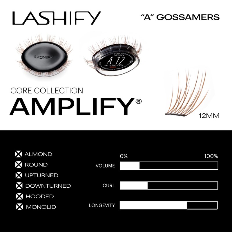 - A is for Amplify. From Lashify’s Core Collection, The Amplify Gossamer is a natural, delicate, wispy lash with a thin, flexible spine. Made for every day, effortless wear. Perfect for a soft, natural look.