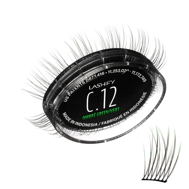Lashify Curl 12mm Gossamer Eyelash Extensions Refill in Ombre Green, Easy DIY False Lashes for a Natural Look