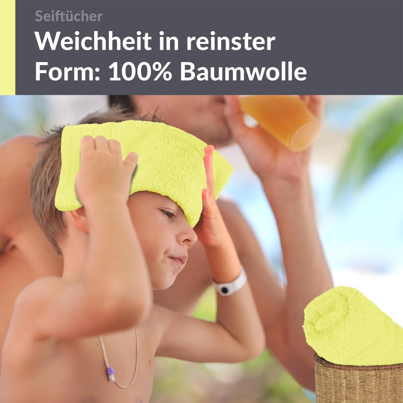 The fluffy terry cloth surface of the flannels ensures a particularly pleasant feeling on the skin and makes them versatile companions in everyday life. Whether as guest towels for the guest bathroom, as washable washcloths for sensitive skin or as practical towels for children - this set meets all requirements. The handy dimensions make the towels ideal for small bathrooms, the guest toilet or on the go.