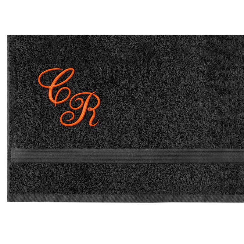 - The approx. 5 cm high premium stick letters are located at the bottom left. Your black cotton towel is embroidered with monogram in our in-house embroidery.