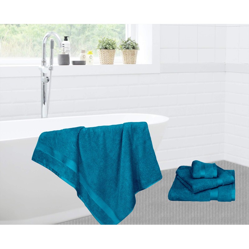 - Our blue beach towel is made from 100% cotton. The fluffy and absorbent terry cloth surface of the bath towel is pure enjoyment for the skin.