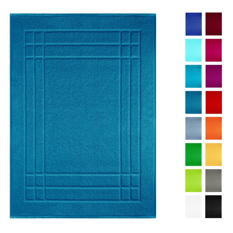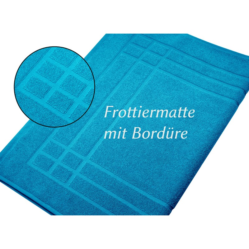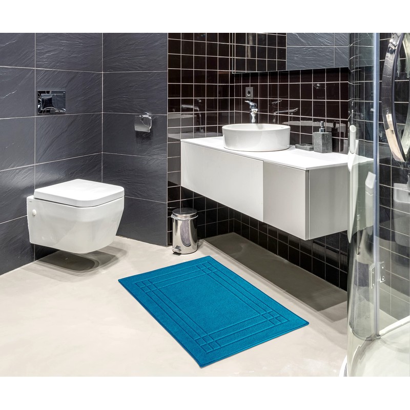 - Our soft bathroom mat approx. 50 x 70 cm as a modern accessory. All around, this quick-drying terry bath mat beautifies your whole bathroom.