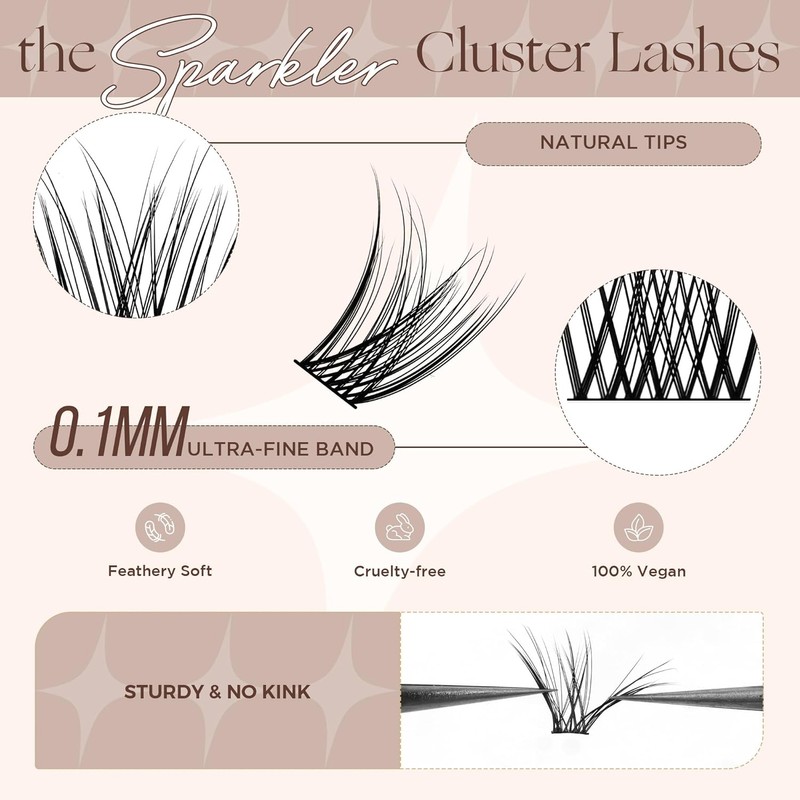 - [Comfortable · Natural-Looking Lashes] Experience the lightweight and soft ultra-fine band diy eyelash extension kit that give your lashes a fluffy, weightless appearance. These high-quality lash clusters can be reused multiple times.
