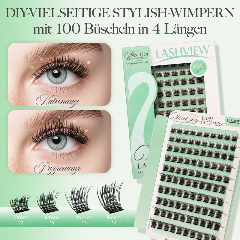 LASHVIEW Cluster Wimpern, Wimpern-Cluster Natürlicher Look Cluster Wimpern Ex...