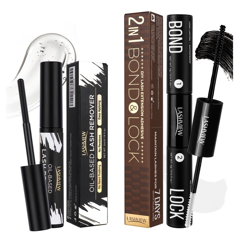 LASHVIEW Lash Bond and Seal & Lash Remover Kit Super Strong Hold 7Day+ Cluster Lash Glue for Sensitive Eyes, Waterproof, Latex Free, Fast Removal Remover with No Residue