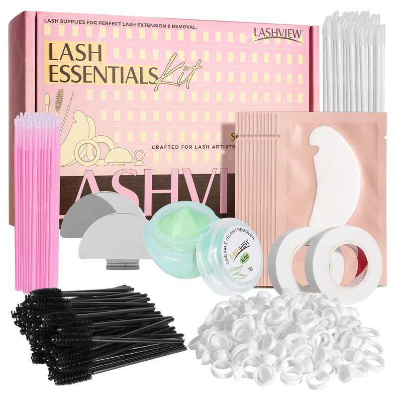 LASHVIEW Lash Supplies Kit Lash Essentials Tools Kit Lash Supplies for Perfect Lash Extension & Removal Include Lash Pads/Eyelash Brush/Lash Tape/Glue Rings/Lash Mirror/Aloe Remover Cream