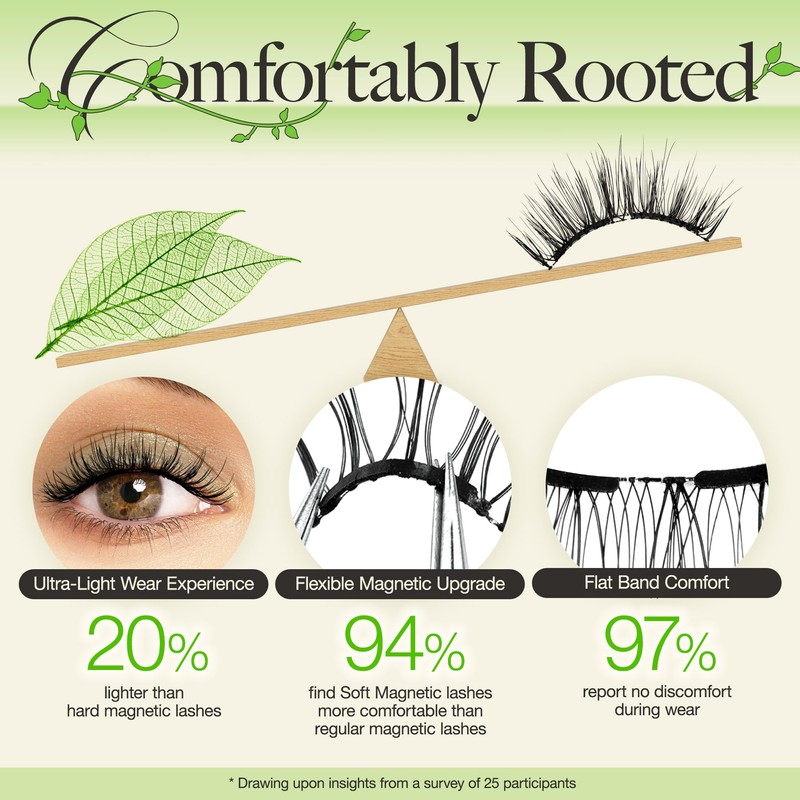 - Unparalleled comfort and seamless fit: innovative soft magnetic craftsmanship gives the natural magnetic eyelashes from Lushvine a vine-like delicacy. Exceptionally lightweight and flexible, adapt perfectly to the contours of your eyes and the curve of your eyelashes. Thanks to this ingenious design, the foreign body feeling that occurs with conventional false eyelashes is effectively avoided
