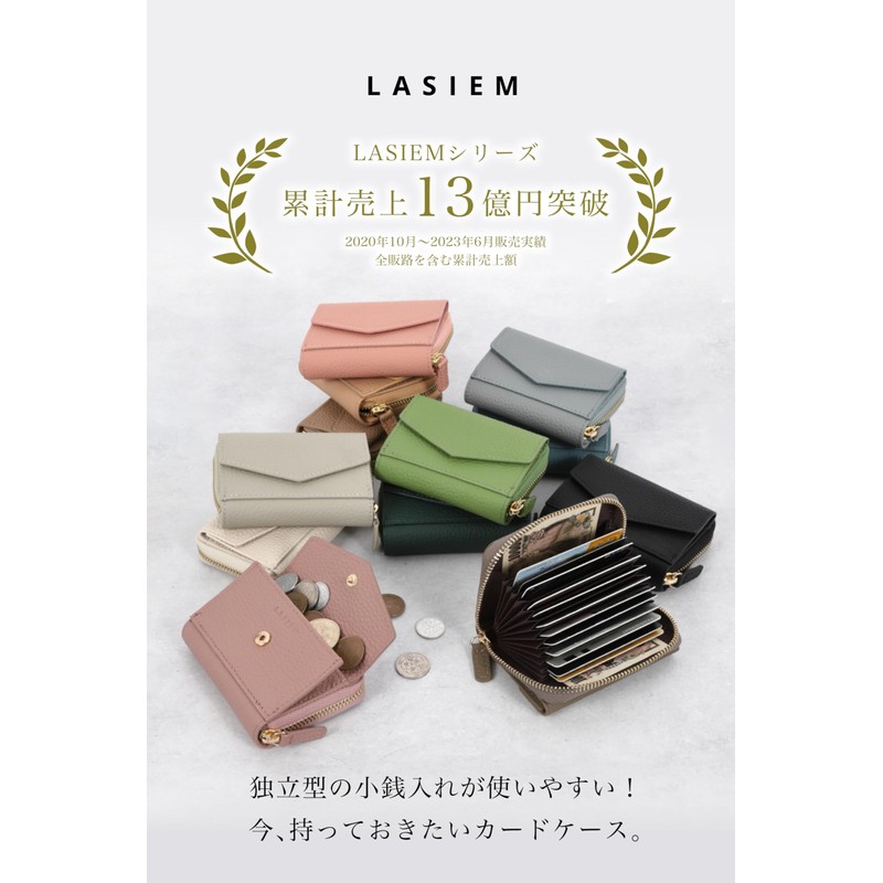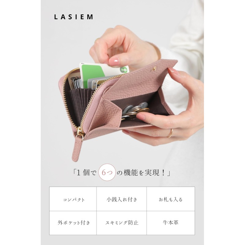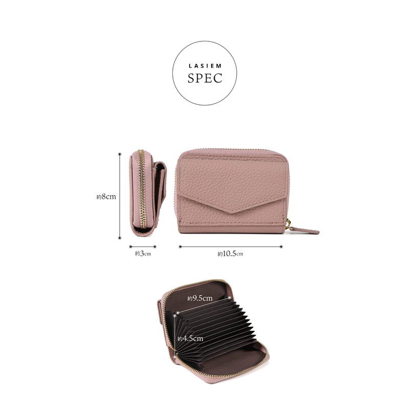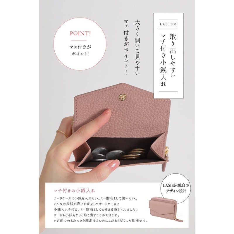 LASIEM Women's Mini Wallet, Card Case, Mini Wallet That Does Not Fold Bills, Coin Case, Genuine Leather, Sakura pink