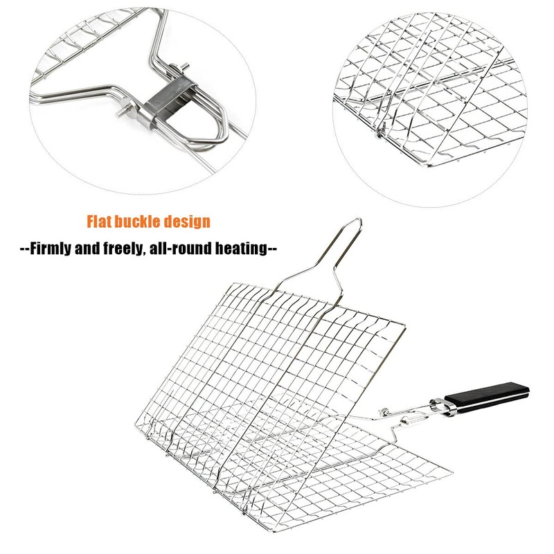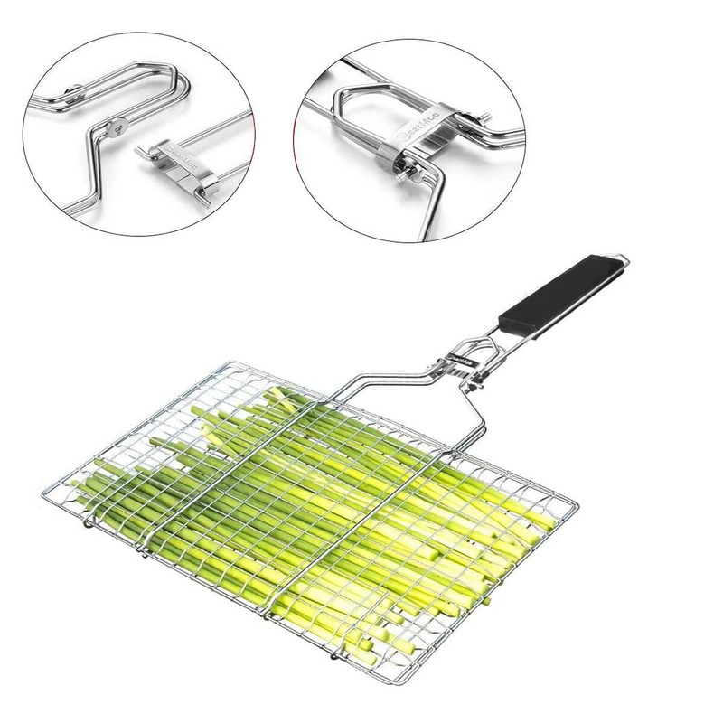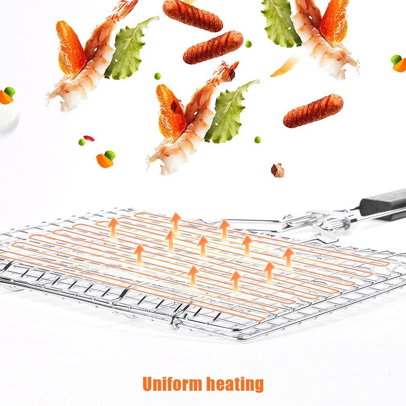 - đăVersatile& Convenientă: The grilling basket are make grilling easy very easy to use, simply place your food in the basket, close it, place it on the grill and then turn it over as needed. Smoke moves easily through the basket to add flavor to meat, vegetables, fish, and much more.