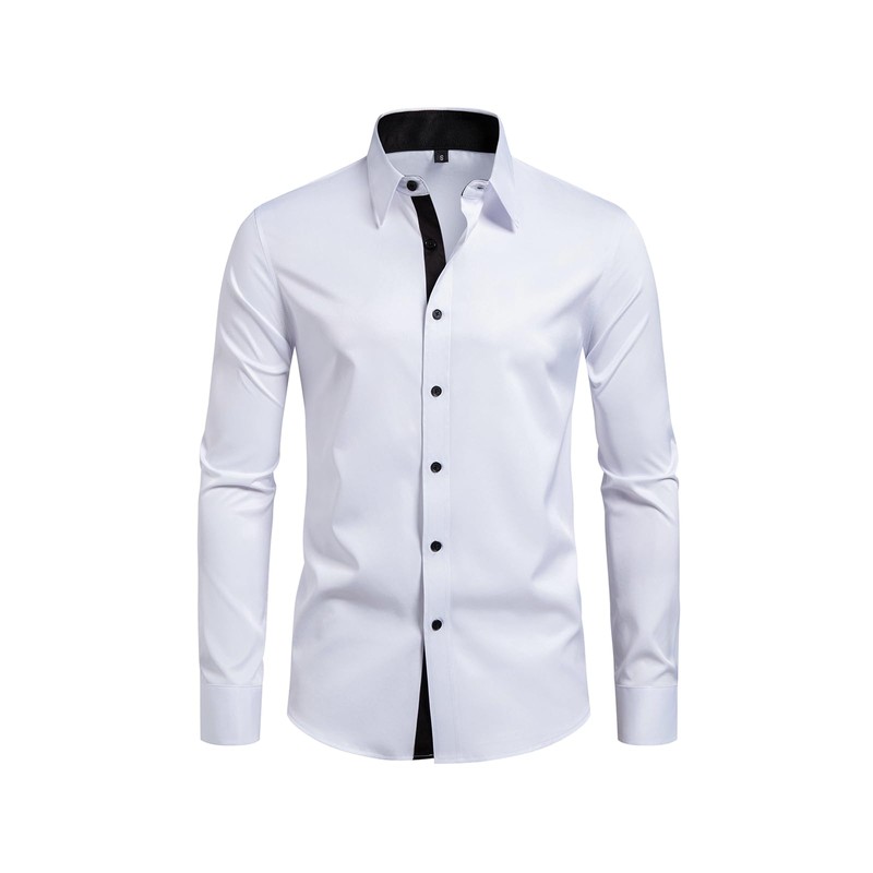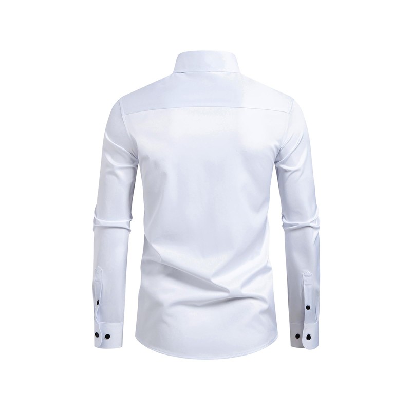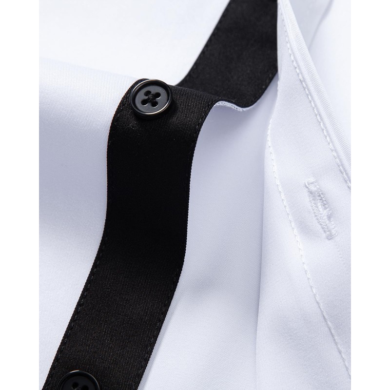 Lasjixion Men's Solid Long Sleeve Dress Shirts Wrinkle-Free Formal Casual Business Button Down Shirts White