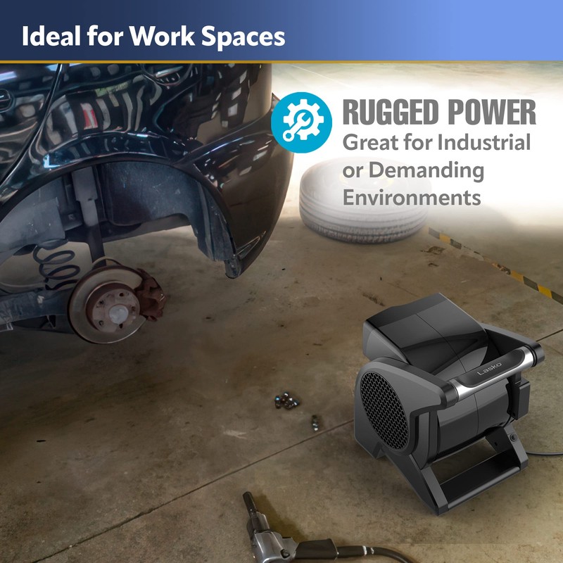 Lasko's Pro-Performance high-velocity utility fan features a pivoting blower to direct the air where you need it for cooling, ventilating, exhausting and drying. Ideal for exercise rooms, garages, workshops, basements, and more, it has two 120-volt accessory outlets and easy-grip handle. Lasko's handy compact utility fan comes fully assembled and ready to help you with your latest project.
