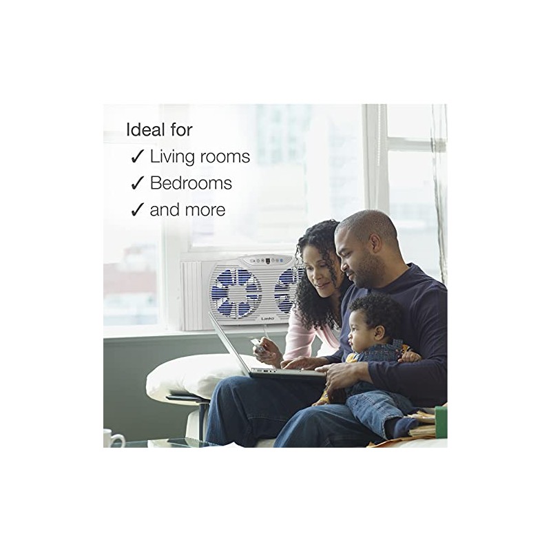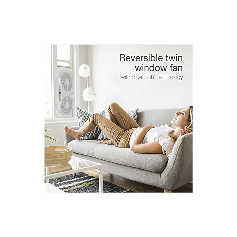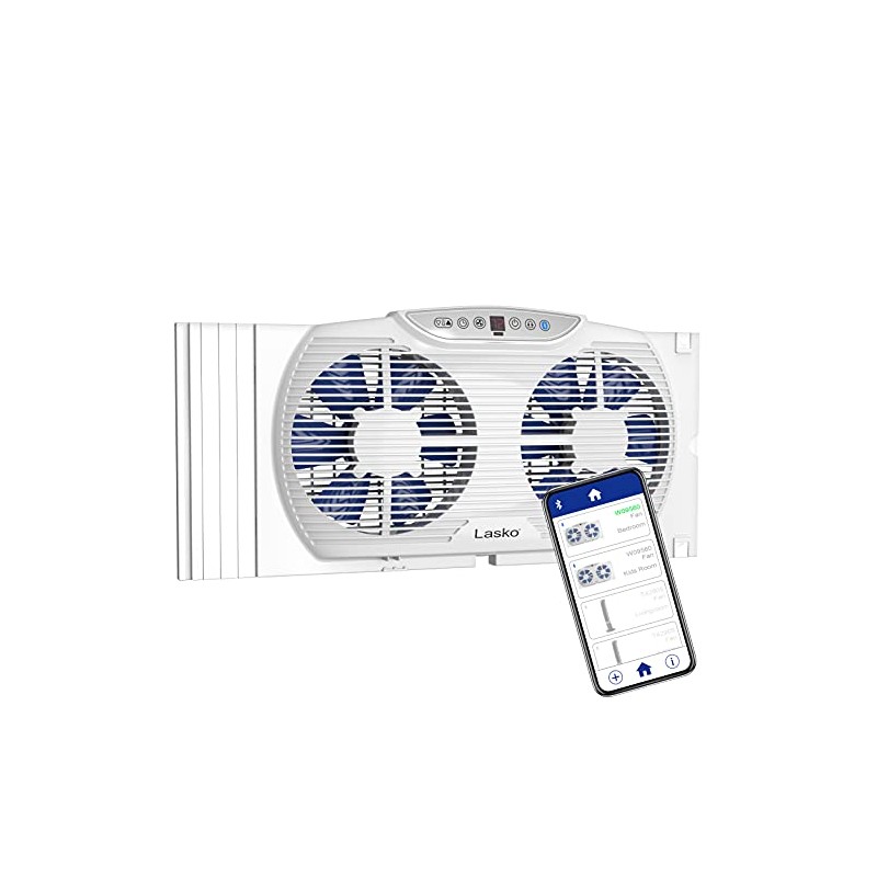 Lasko W09560 Bluetooth Enabled Twin 9-Inch Window Fan with Independent Electrically Reversible Intake & Exhaust Motors with Thermostat and Timer for Bedroom Indoor Home Use, White | Lasko