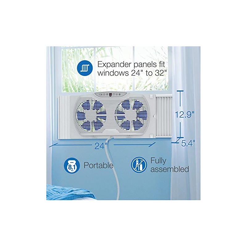 - 【EASY TO INSTALL】Comes fully assembled and ready to use. Simply place fan in center of open window area, extend side panels to securely fit in window track, then lower window and secure behind window grabber on top of fan. Fits windows from 24” to 32” wide and 12” high and larger. Ideal for most double hung, casement and sliding windows.