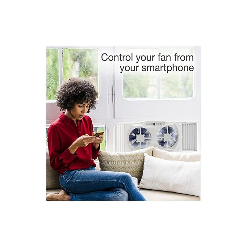 The Electrically Reversible Twin Window Fan with Bluetooth from Lasko allows you to control your fan with your smart phone. Two independently controlled motors for intake, exhaust, or air exchange. Easily adjust the brightness of the easy-to-read digital display. The included thermostat senses room temperature and turns fan on or off to maintain comfort. Features an electronic 8-hour timer and 3 quiet speeds. This window fan includes expanding side panels for a safe custom fit in double hung, casement, or sliding windows sized 24" to 32" wide and 12" high or larger. Comes equipped with the Lasko Blue Plug, trusted safety fuse technology. Fully assembled for window use