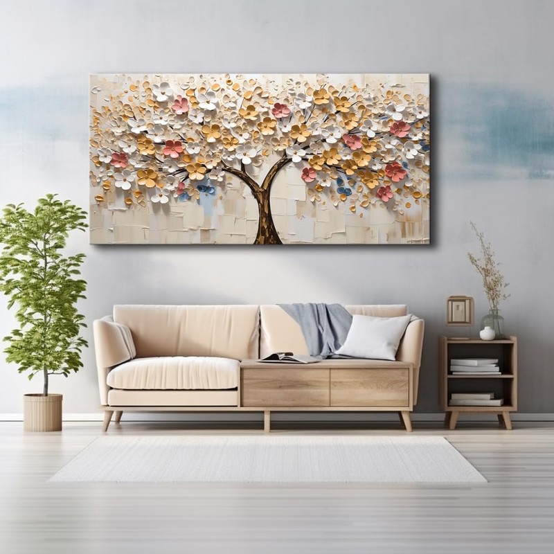LASMOND LASMOND White Spring Tree of Life Wall Art Office Decor Living Room Modern Painting Prints Pictures Abstract Floral Flower Nature Canvas Large Landscape Artwork (20x40 Inches)
