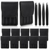 Lasnten 12 Sets Eyebrow Tweezers Set and Curved Scissors, 4 in 1 Professional Stainless Steel Tweezers for Women and Men, Splinter and Ingrown Hair Removal with Travel Case(Black)