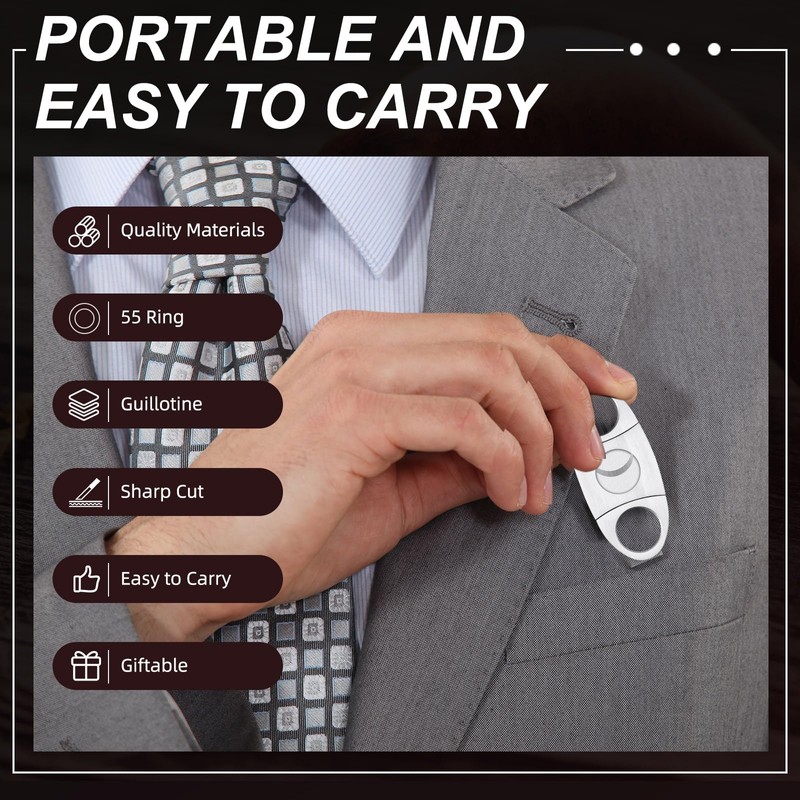 - Widely Applicable: our cutter with leather pouch are exquisitely packaged and appropriately sized, making them ideal gifts for fathers, boyfriends, groomsmen; They can be applied for weddings, offices, outdoor events,cafes, hotels, and more