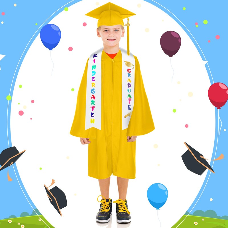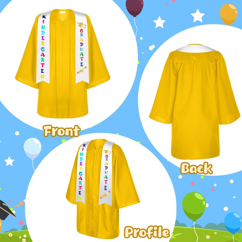 - Printed Stole: printed with the [Kindergarten, graduate] alphabet and made of satin fabric, which is measures 51.2 x 3.15 inches, giving it a graduation atmosphere