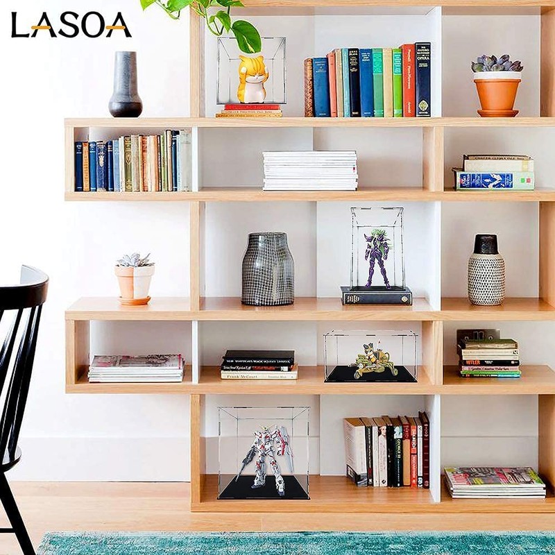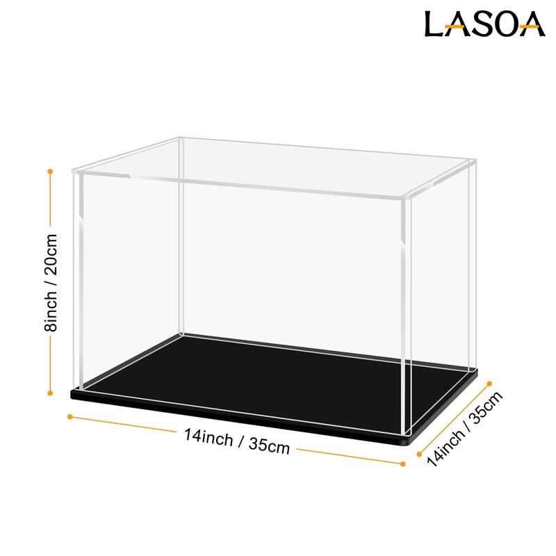 LASOA Acrylic Display Case for Collectibles, Alternative Glass Display Box with Black Base and Lid, Self-Assembly Clear Storage Showcase for Figurine Memorabilia (14x14x8inch;35x35x20cm)
