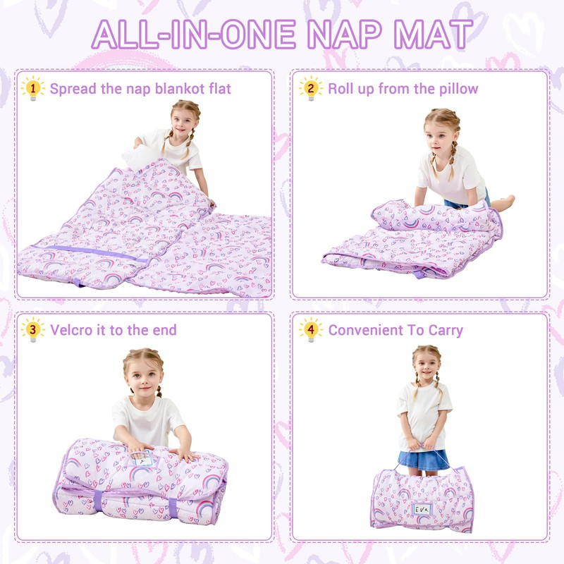 - Convenience Design:The kids nap mat can be rolled up, Its travel-friendly design makes it easy for your little one to take their nap mat