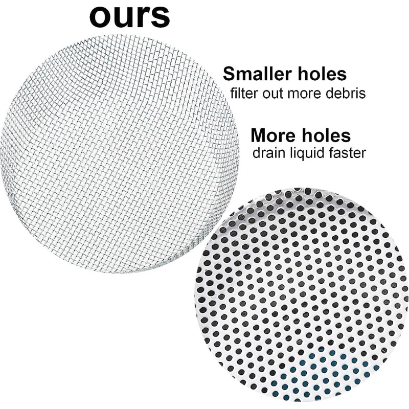 Hemming processingSmooth edge,Ensure the safety of users | Thicken 2-ply metal sheet flat rimnot easily deformed | Micro-perforation diameterMicro-perforation diameter: 0.04”, can filter out more solid debris, Efficient anti-clogging. |
