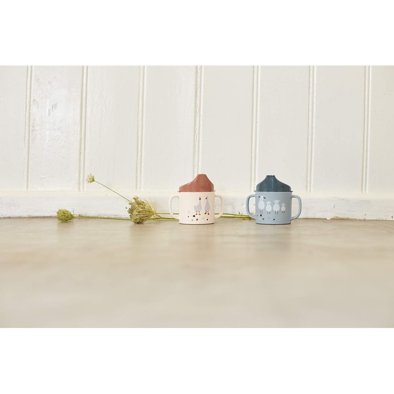 LÄSSIG Children's Sippy Cup with Handle and Removable Lid 150 ml Tiny Farmer Sheep / Goose Blue