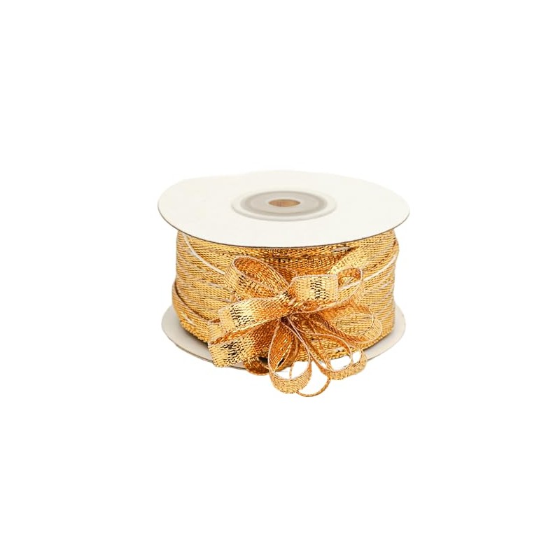Lassos Boutique 1/4" X 50 Yards Iridescent Pull String Bows Christmas DIY Craft Gift Ribbon (Metallic Gold)