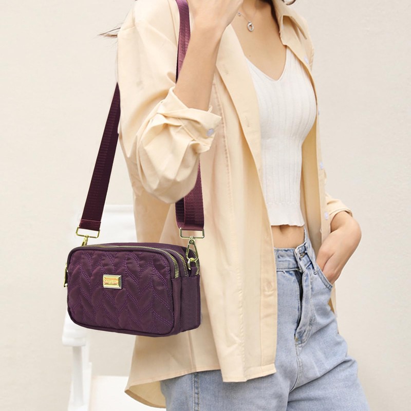 - Made of water-resistant nylon with a polyester lining, sturdy hardware and a smooth zip, this is a practical women's crossbody bag for everyday use.