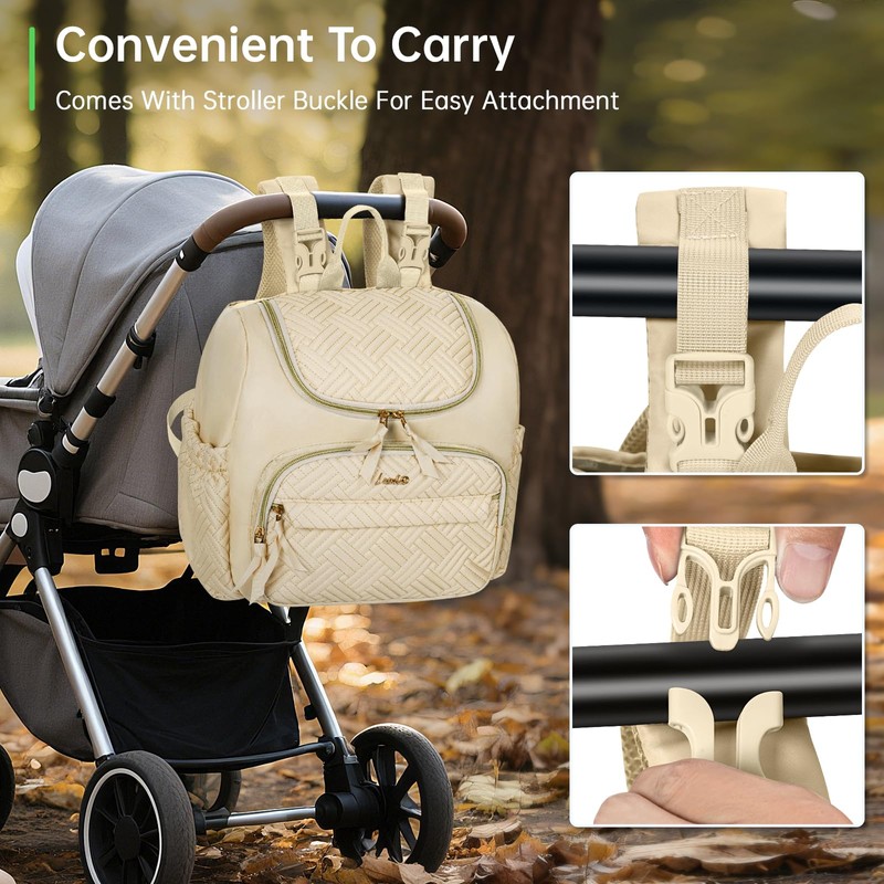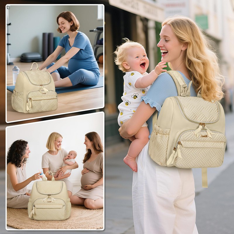 LASUK Diaper Bag Small Diaper Backpack, Stylish Quilted Baby Backpacks, Mini Maternity Bags, with Changing Pad, Pacifier Case & Stroller Straps, Parents Essentials Diaper Bag, Light Beige