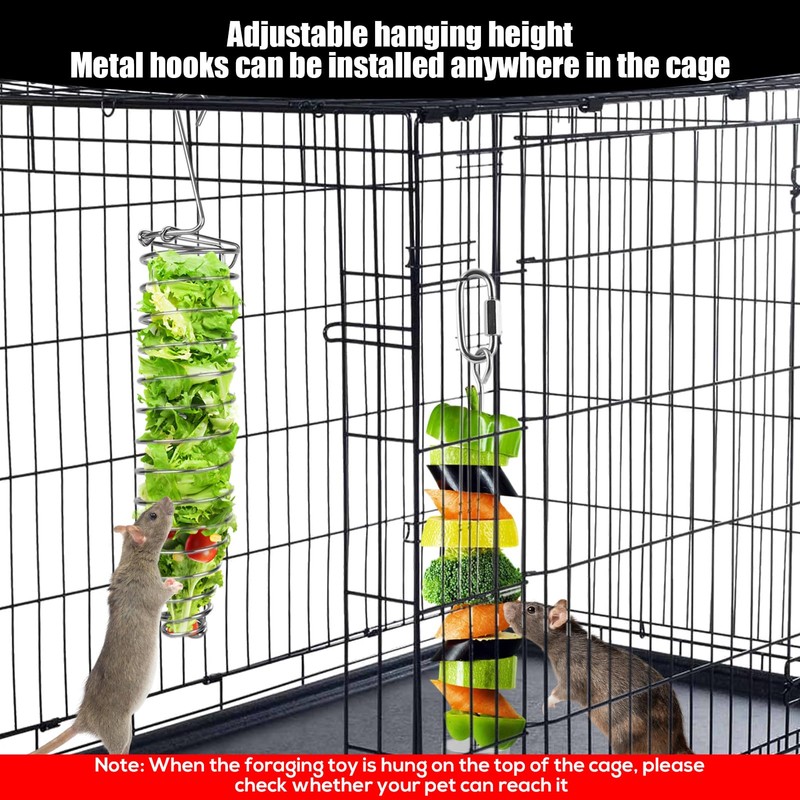 - Easy to Install: The rodent slow feeder is equipped with strong metal hooks for easy installation anywhere in the cage. The height is adjustable to keep food off the cage floor. Tip: Make sure your pet can reach the toy.