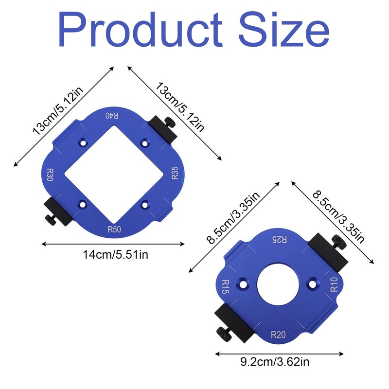 - Compatibility: This router corner radius template can meet 8 interchangeable router guide templates, namely R10, R15, R20, R25, R30, R35, R40, R50, and has strong compatibility.