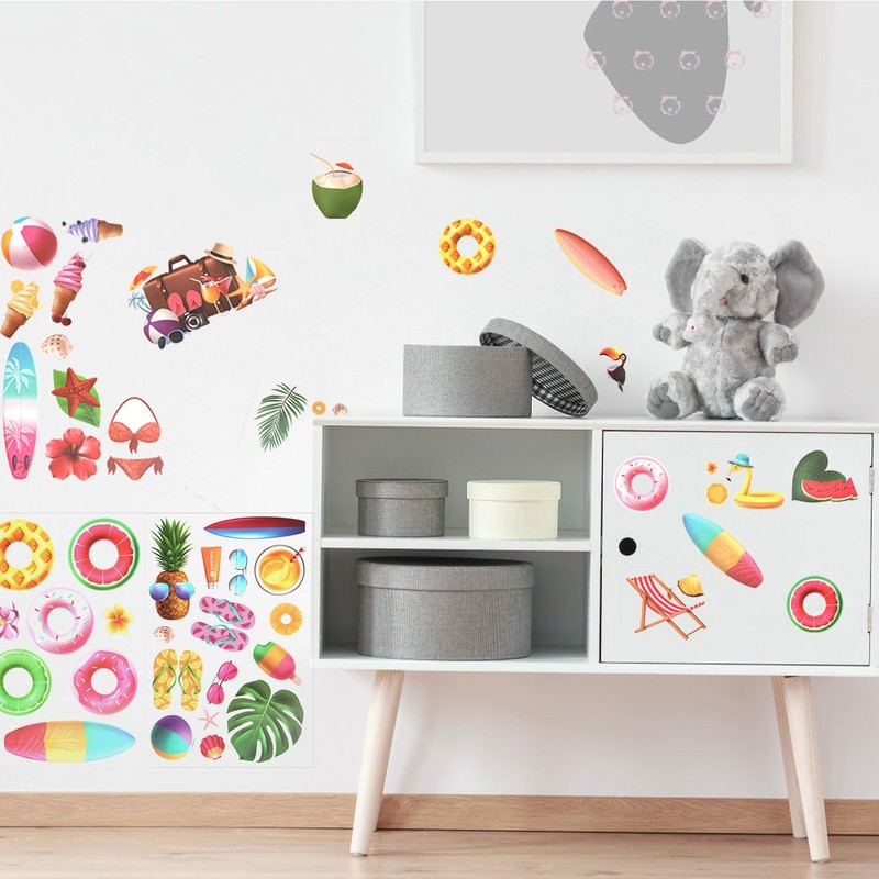 - Wide Applications: The summer window decals are suitable for smooth surfaces such as windows, glass, mirrors, tiles, etc., and can be widely used in home decoration, pool parties, classrooms, beach theme parties, Hawaiian theme parties, etc.