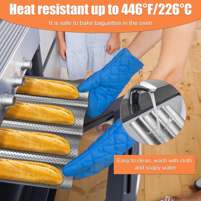 - Premium Material: The baguette pan is made of premium quality carbon steel, strong and reliable. With excellent heat resistance, baguettes are safe to bake in the oven with a maximum baking temperature of 446 Fahrenheit/226 Celsius.