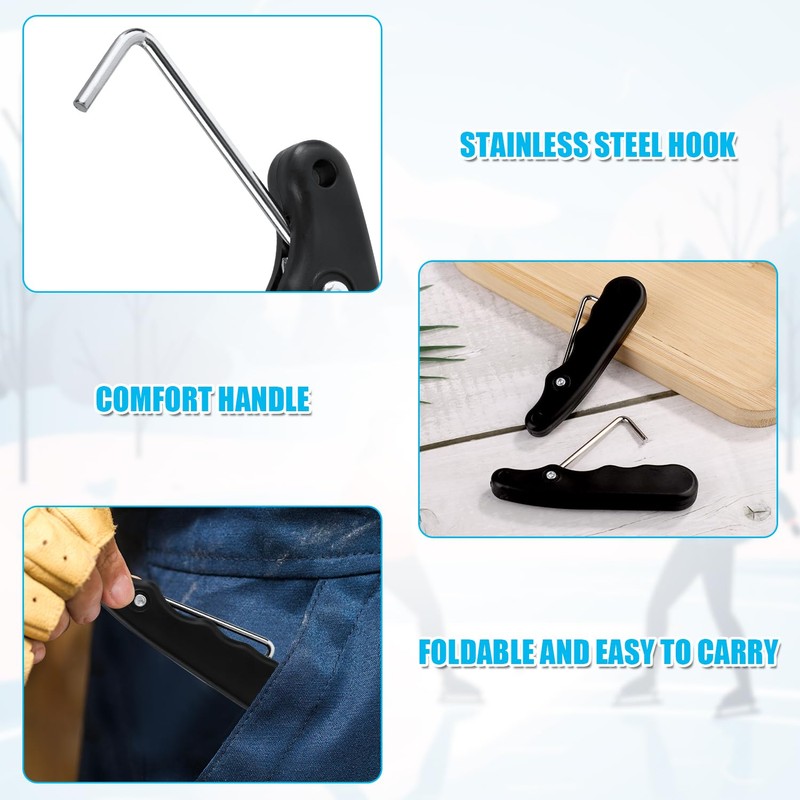 lasuroa Hockey Skate Tightener, Foldable Shoe Lace Puller Anti-Slip Stainless Steel Ice Skates Lace Hook Portable Shoe Lace Tightening Tool for Lacing Up Ice Skates Boots(Black)