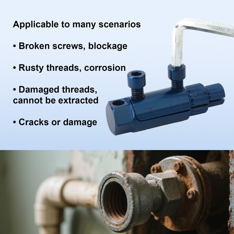 • Product Included You will get 1 broken pipe thread extractor and 1 wrench, specially designed for quickly and efficiently removing damaged faucet threads and broken pipe sections during plumbing repairs.