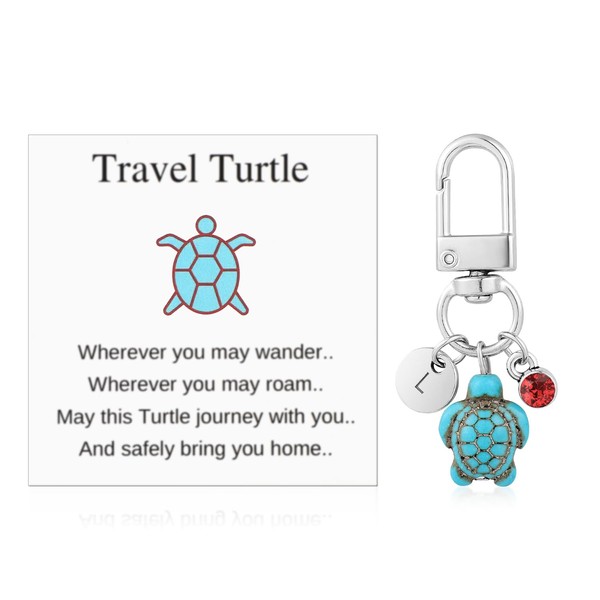 lasuroa Travel Turtle Pendant, Cute Turtle Keyring with Red Gemstone and Encouragement Card, Creative Name Initials, Sea Turtle Pendant for Family Friends, l