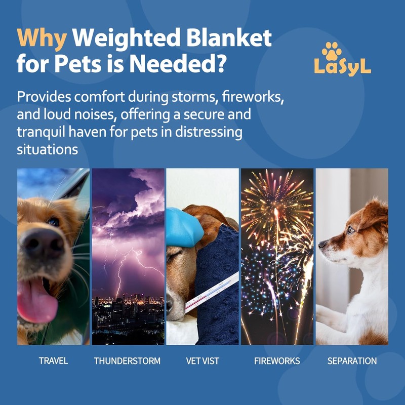 - 【Unique Weighted Dog Blanket】- With our unique weighted design,the 7 layers blanket can evenly distributes weight to the shape of pets body. Very shortly after covering them, your dog will just become calming mellowing out and fell asleep under the weight of the blanket. If you dog or pet is often excited and anxiety or when thunder that they cannot get a relaxed or quiet sleep, this unique weighted dog blanket is greatly recommend to you