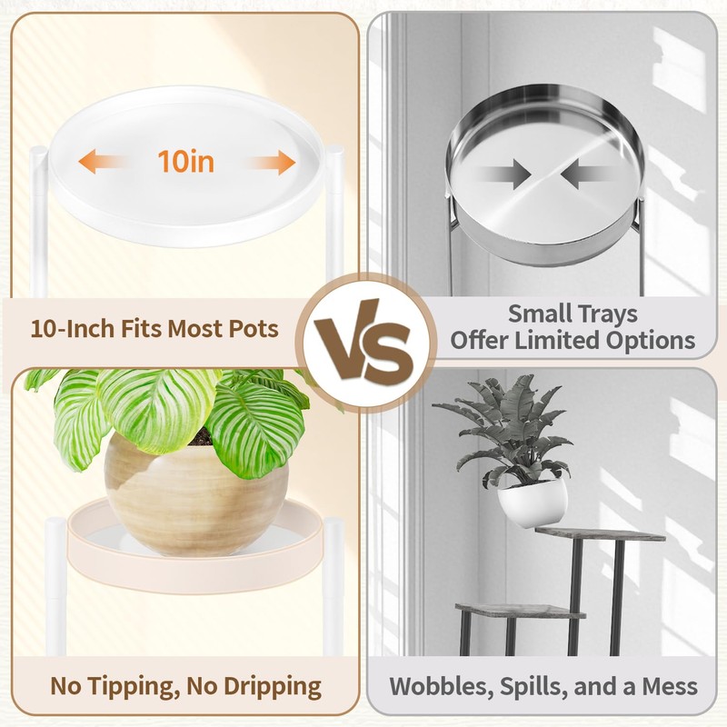- 【Perfect Home for Big Pots】Say goodbye to the frustration of finding the right spot for your big and heavy flower pots. Our newly upgraded 10-inch tray provides the perfect home they deserve. It gathers them into one beautiful display, raised for better sunlight and more convenient care.
