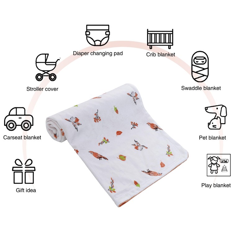 LAT Baby Blanket, Children's Blanket with Minky, Cuddly Blanket, Baby Cotton Crawling Blanket, Pram Blanket, Unisex Baby Blanket for Newborns, Children, Baby Blanket for Spring, Summer (Birds, 110 x