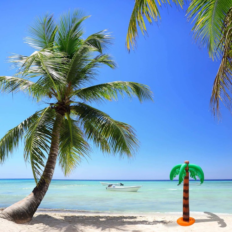 - [Size] Inflatable palm tree's height is 86cm, flamingo's height is 50cm, beach ball's diameter is 25cm, and banana balloon's length is 68cm, dolphin's length is 50cm, parrot's length is 75cm