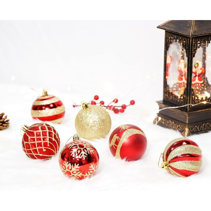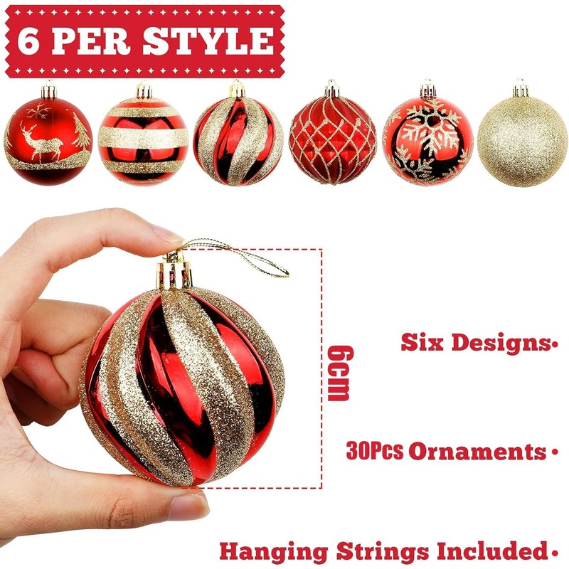 LATERN 30Pcs Christmas Baubles, 6CM Red and Gold Christmas Ball Ornaments Shatterproof Christmas Hanging Balls Sets for Christmas Tree Holidays Home Xmas Party Decoration (6 Styles)
